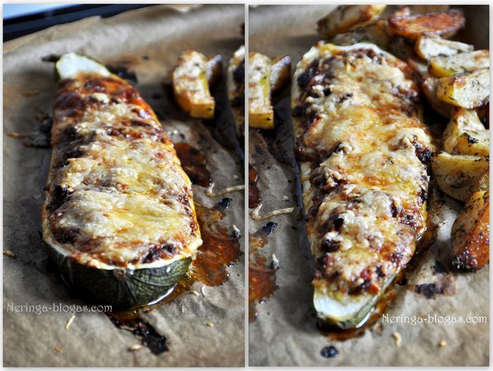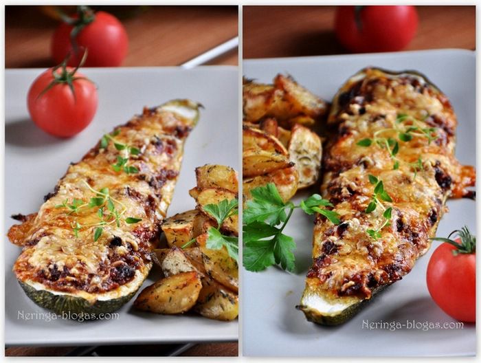 Gaminame . Keptos cukinijos, įdarytos faršu.