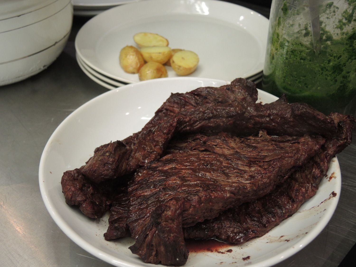 Iškepus mėsai ji palaikoma atvėsti apie 30 - 40 minučių. Vėstant skystis pasiskirsto po visą gabalą.