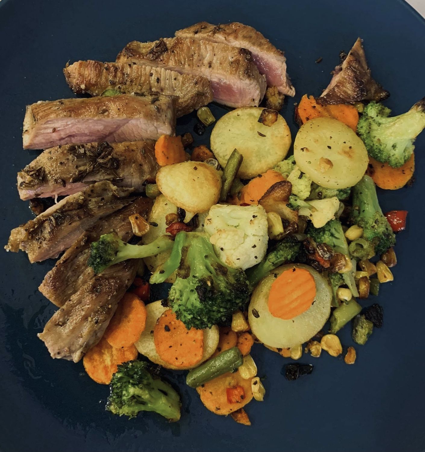 Iškeptą kepsnį išimkite iš orkaitės ir mėsai leiskite 10-15 minučių „pailsėti“ skardoje ir tik tuomet pjaustykite. Kepsniui “ilsintis” tolygiai pasiskirsto skysčiai jo viduje ir jis būna skanesnis.