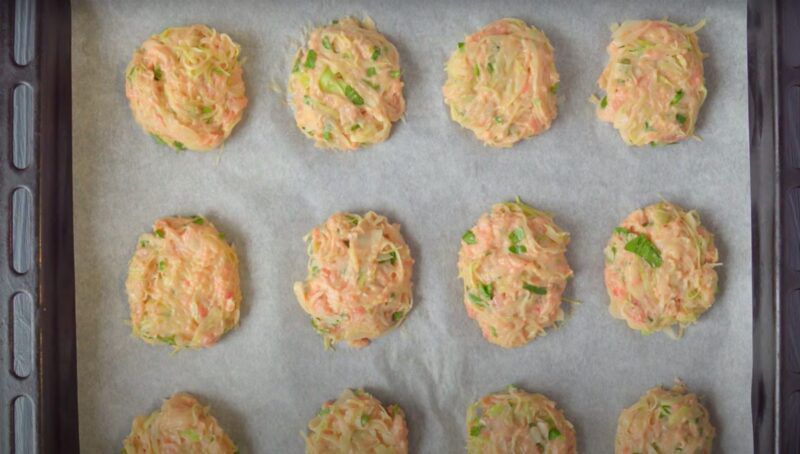 Suformuotus kotletus sudėkite ant pergamentu išklotos kepimo skardos. Kotletus kepkite 200 laipsnių temperatūros orkaitėje pusvalandį.