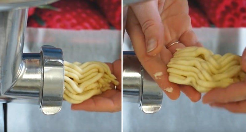 Atkreipkite dėmesį, kad geriau supjaustyti arti mėsmalės, kad kito sausainio kraštas neliptų kartu.
