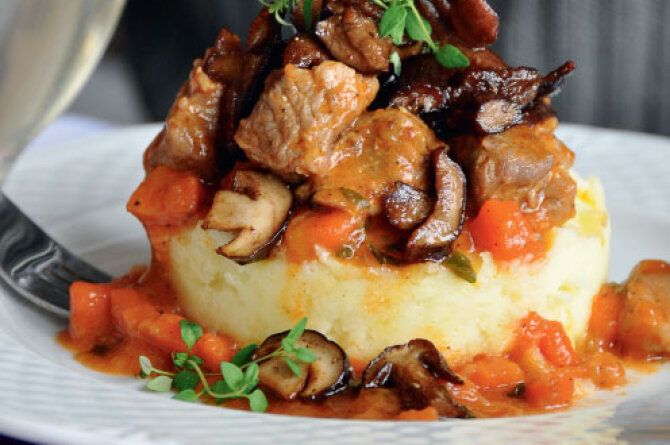 Kalakutienos filė500 gramaiMorkos2 vntAugalinis aliejus50 mililitrųSvogūnai3 vntDruska, pipirai, prieskoniaipagal skonįBulvės1 kilogramasPienas300 mililitrųSviestas50 gramųVanduo1 litrasPomidorų pasta2 šaukštaiReklamaGaminimo eiga
