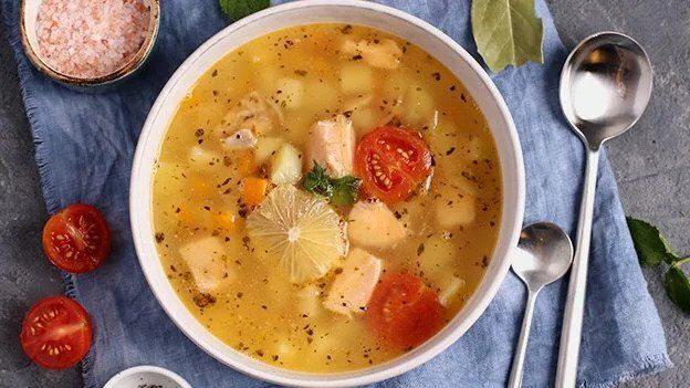 - Paruoštą lašišos sriubą patiekite su citrinos griežinėliais ir pabarstę krapais. Galima patiekti su grietinėle.