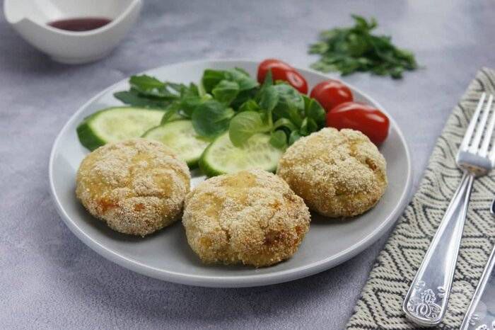- Suformuokite nedidelius vienodo dydžio kotletus ir apvoliokite džiūvėsėliuose.