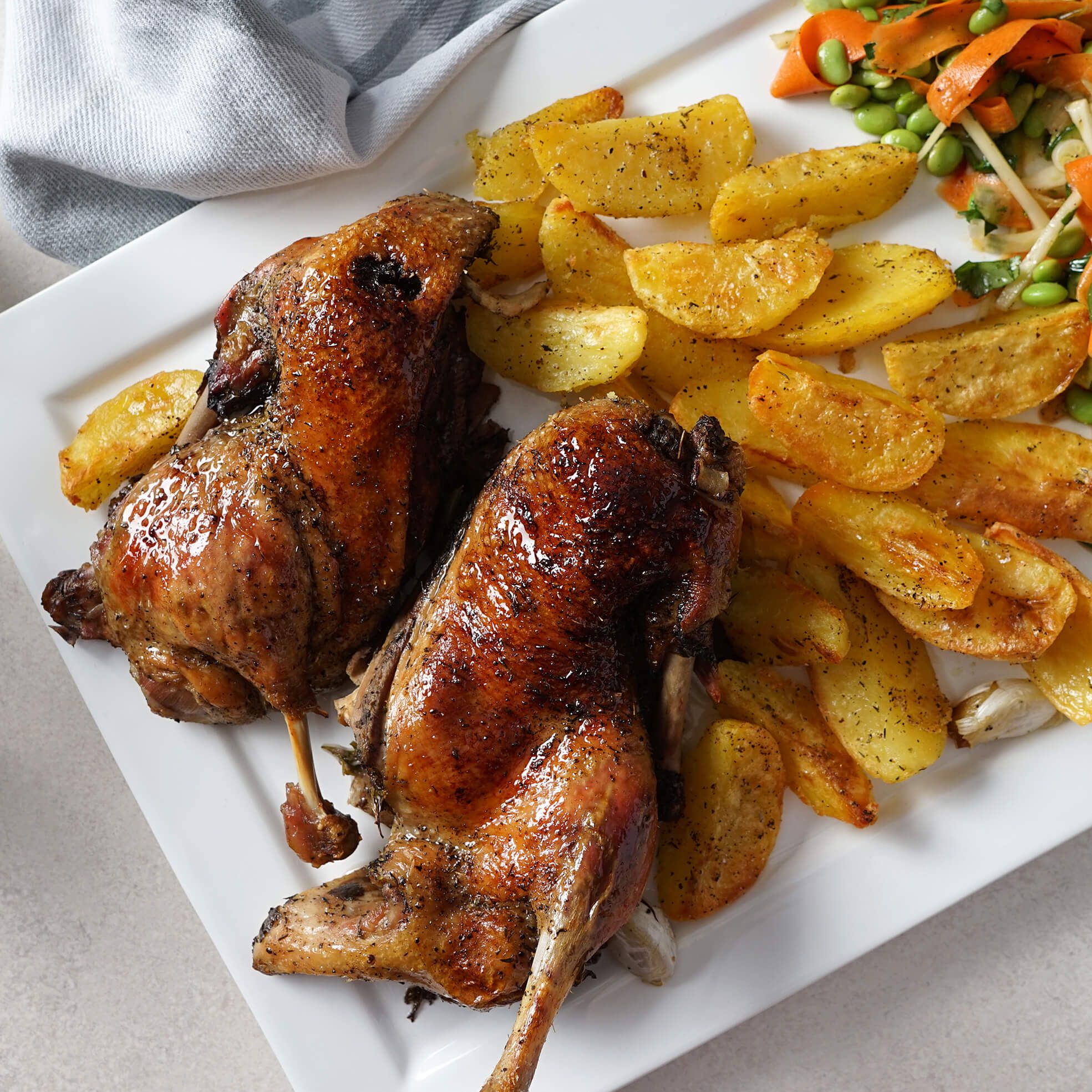 Likus 40 min. iki paukščio kepimo pabaigos, į skardą sudedame ir iškepame kartu obuolius. Jei pjausite juos pusiau, užteks ir 20 min.