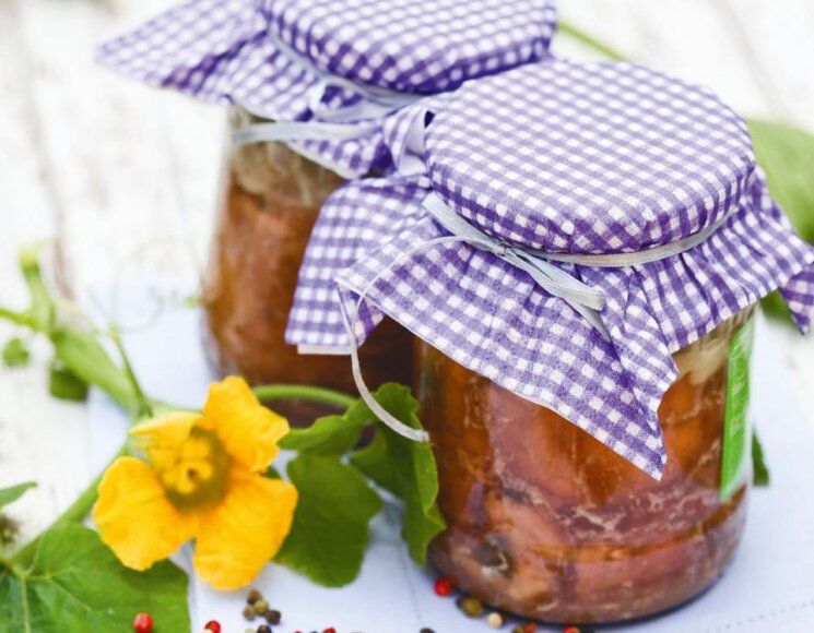 Tada turėtumėte sterilizuoti visas skardines vandens puode, išimti iš ten ir užsukti. Būtina suvynioti sandariai uždarytas skardines, kad jos lėtai atvėstų.