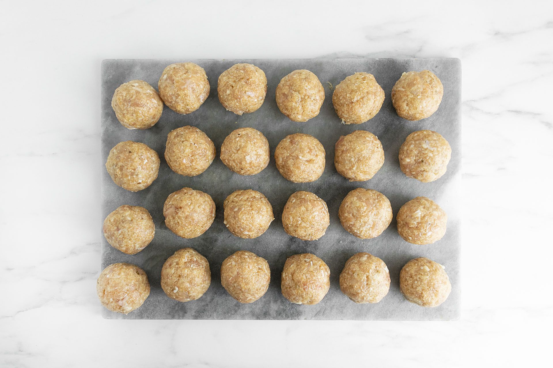 - Suformavau nedidelius kukulius ir sudėjau juos į kepimo indą.