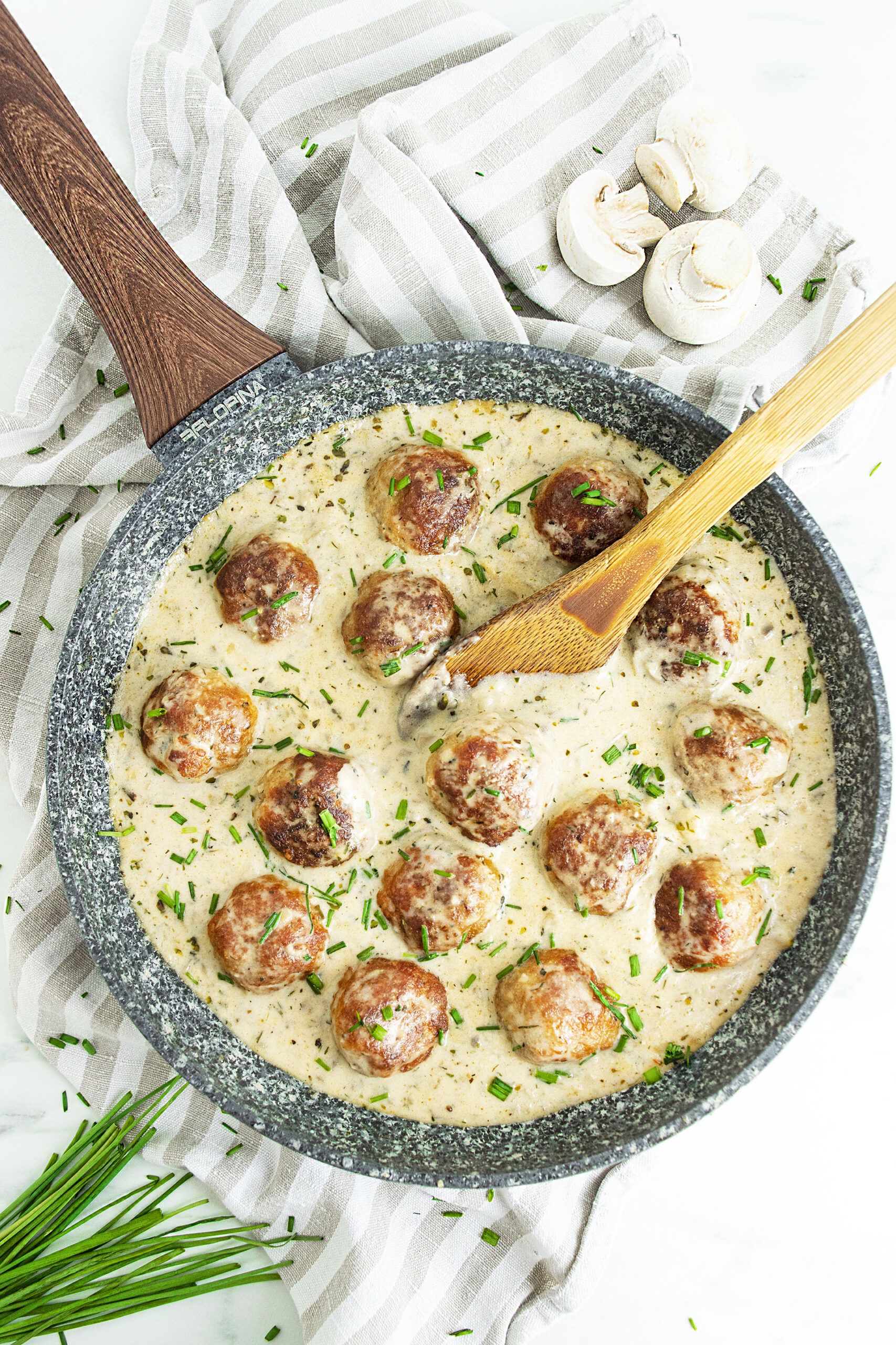 Puikiai paruošti mėsos kukuliai su padažu yra vienas tų patiekalų, kurių niekada neatsivalgau. Galėčiau kiekvieną dieną gaminti juos iš skirtingų rūšių mėsos su skirtingais gardžiais padažais, ir man niekada nebūtų gana! Šie vištienos kukuliai kreminiame grybų padaže yra vienas mėgstamiausių mano mėsos kukulių receptų, o padažas toks fantastiškas, kad dažnai(kartais per daug dažnai) jį naudoju ir kituose savo patiekaluose.