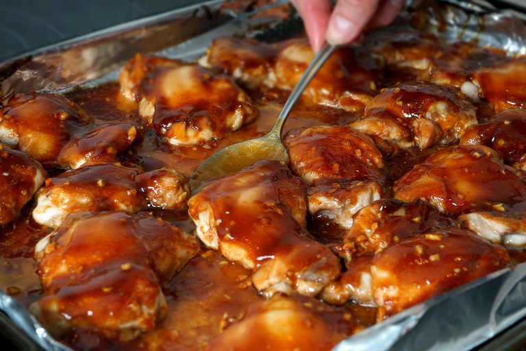 Lipnūs, karamelizuoti, sultingi ir neįtikėtinai greitai paruošiami vištienos kepsneliai – kas gali būti geriau! Pagrindinis produktas, kuriuo turėsite pasirūpinti iš anksto, tai vištienos šlaunelių mėsa (be odos ir be kaulo), nes kitus ingridientus, tikriausiai jau turėsite namuose. Šis patiekalas reikalauja tiek nedaug pastangų ar meistriškumo, kad paragavę maloniai nustebinsite ir save, ir savo svečius. Dar keli šio recepto privalumai: jokio marinavimo, jokios aptaškytos kaitlentės, tiesiog, apšlakstome mėsą padažu, šauname į orkaitę ir mažiau nei po pusvalandžio mėgaujamės nuostabiu kepsniu ir klausomės jūros komplimentų.