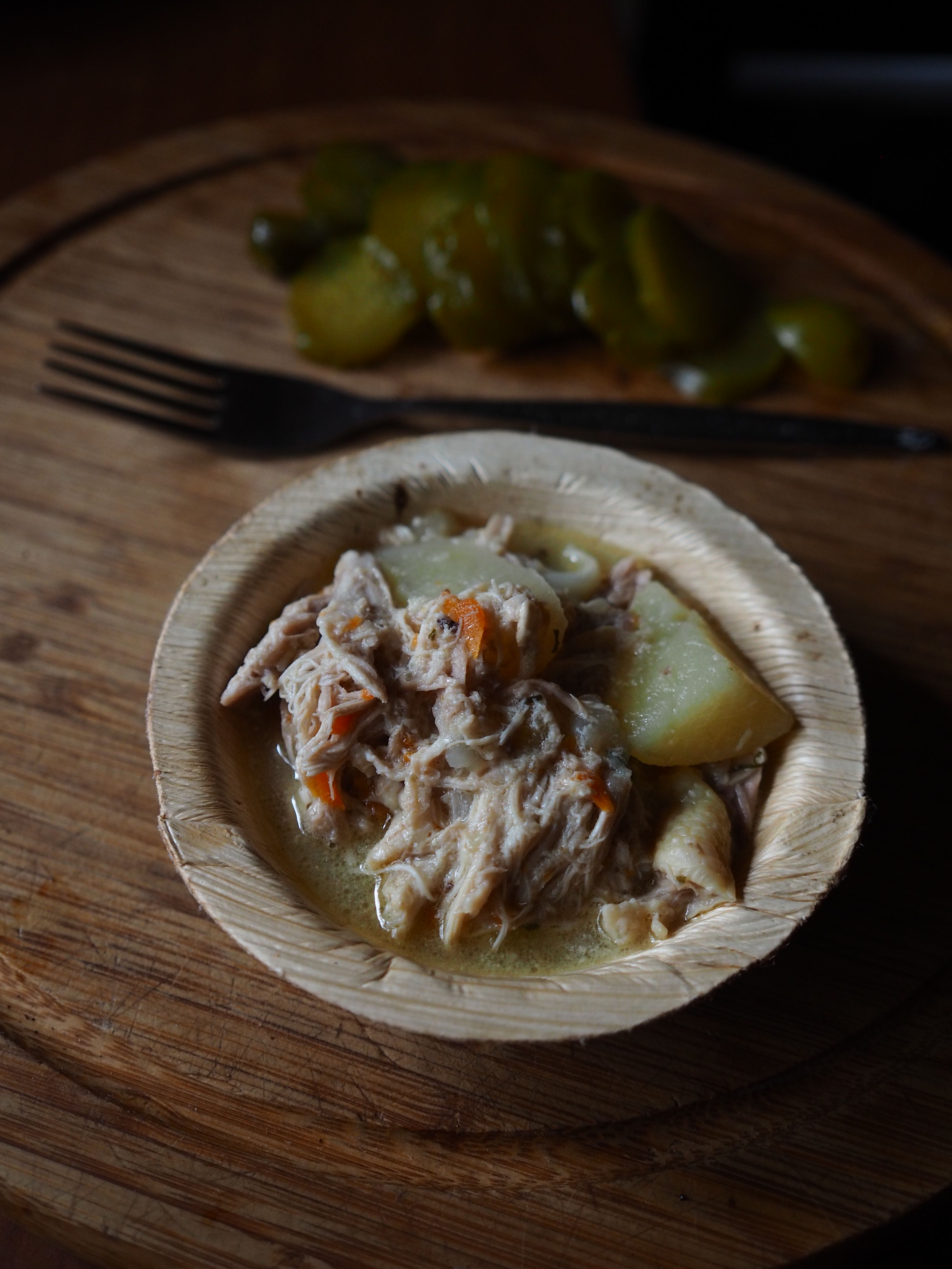 Šis troškinys dar ir puikus būdas pradėti valgyti naminę paukštieną, gerai iškepti orkaitėje kaimiškai augintą vištaitę retam pavyksta, o štai garuose ji tampa minkšta ir sultinga.
